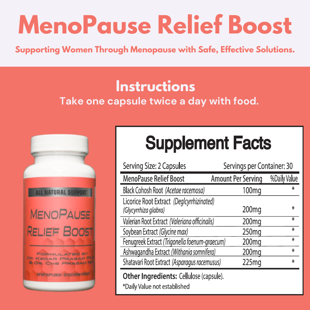 MenoPause Relief Boost can be highly beneficial for women to help manage the uncomfortable symptoms associated with hormonal changes, such as hot flashes, mood swings, night sweats, and vaginal dryness. This product can improve overall quality of life by promoting better sleep, emotional balance, and physical comfort. By supporting the body’s transition during this natural phase, MenoPause Relief Boost empowers women to maintain their well-being and continue living actively and confidently.