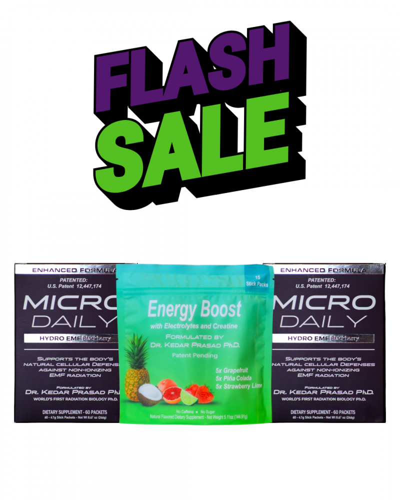 Protect yourself from electromagnetic radiation with Micro Daily Hydro EMF, a powder form of Micro Daily EMF designed to mix with water for accelerated absorption.* Formulated by Dr. Kedar Prasad, the world’s first radiation biology Ph.D., this drink features all-natural ingredients and flavors, zero calories, and a refreshing natural citrus taste*