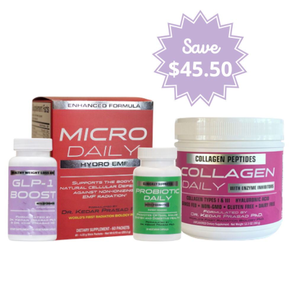 The Premium Bundle is your solution for cellular, gut, and skin health. The Micro Daily EMF capsules provide essential nutrients for cellular health and immunity, the Probiotic Daily supplements enhance gut health and digestion, and the Collagen Daily supplement revitalizes your skin and boosts collagen production.* Together, they offer a holistic approach to your health - enhancing immunity, improving brain function, promoting gut health, revitalizing skin, and much more.*